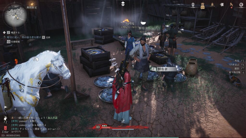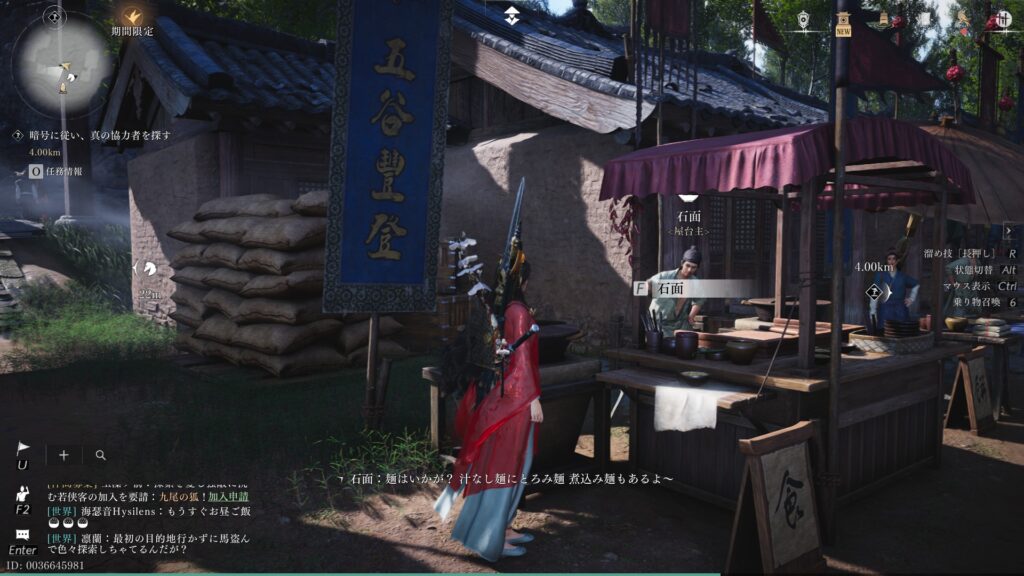 販売物:魚麺(採薬の会心率+10%または採掘の会心率+10%/20分)