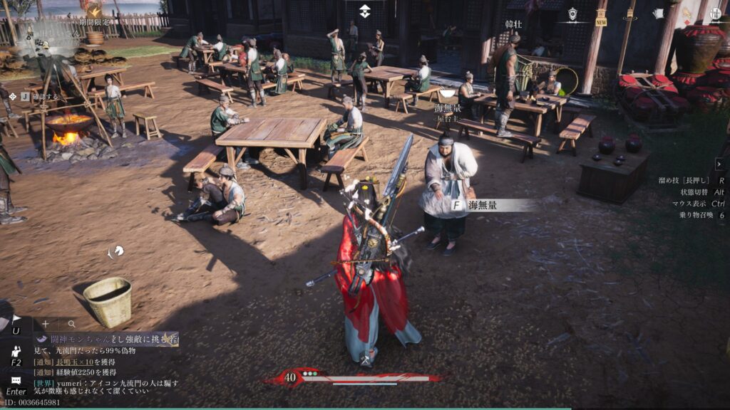 販売物:麦飯(採薬の会心率+10%/10分)、鶏炒め麺(採薬の会心率+20%/10分)