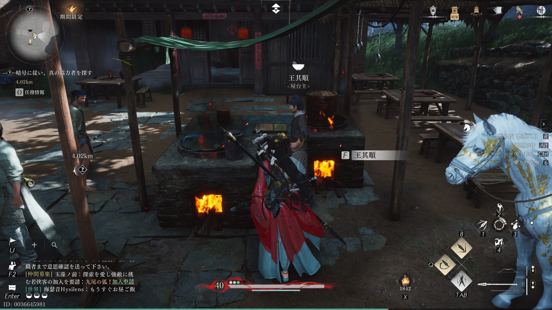 販売物:麦飯(採薬の会心率+10%/10分)、鶏炒め麺(採薬の会心率+20%/10分)
